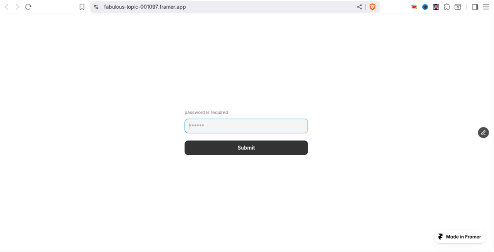 Password Protect Individual Pages is a full-screen, responsive page locker for Framer. It works entirely on the client side, is easy to set up, and gives you total design freedom. Unlike generic password gates, you can design your lock screen exactly the way you want — with your own images, colors, text, and layout — for desktop, tablet, and mobile.
